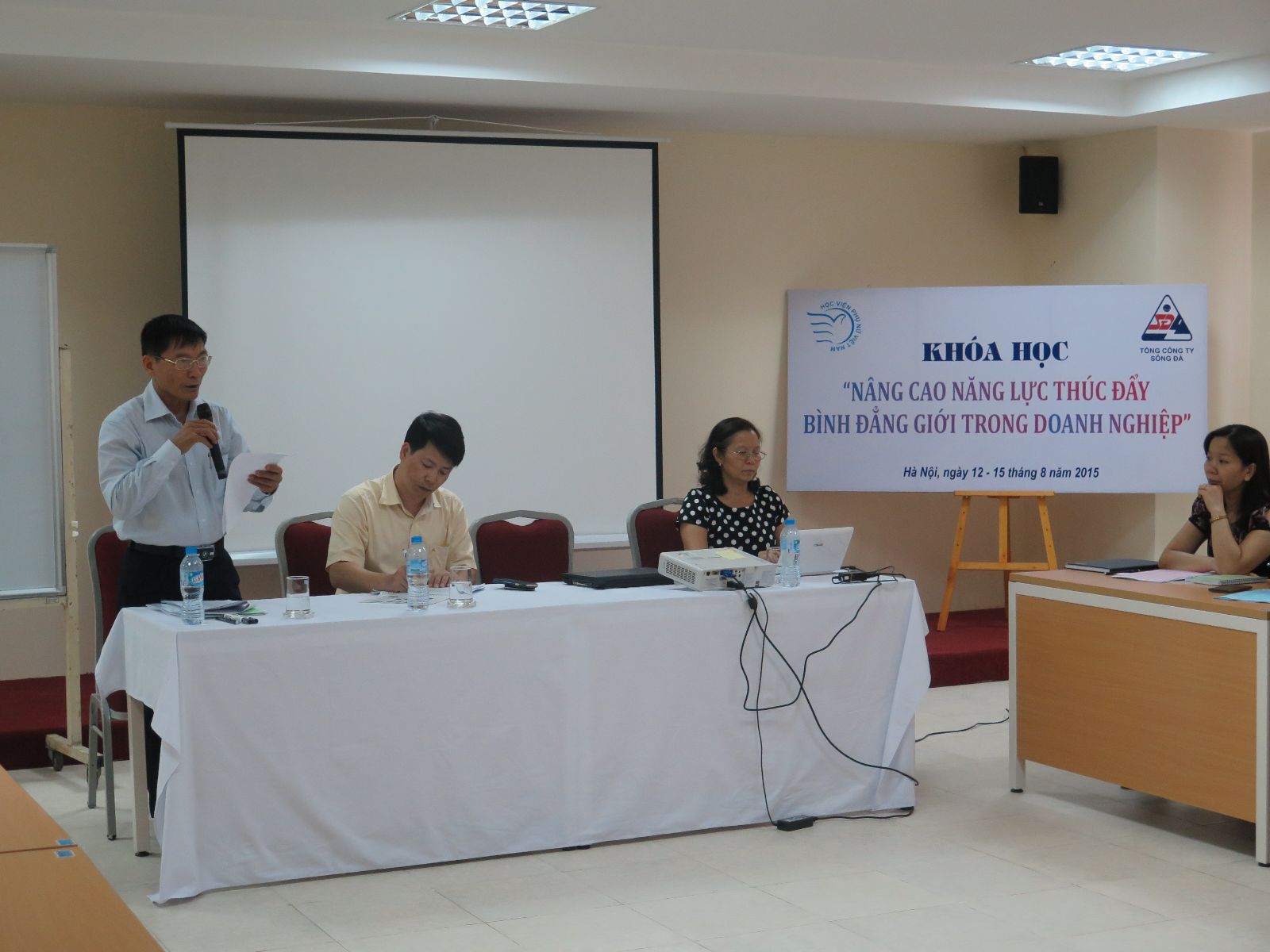 Góp phần đưa Những nguyên tắc trao quyền cho phụ nữ vào thực thi tại các doanh nghiệp, khóa học Nâng cao năng lực thúc đẩy bình đẳng giới cho cán bộ, nhân viên Tổng công ty Sông Đà do bộ môn Giới và Phát triển, Học viện Phụ nữ Việt Nam phối hợp với Tổng công ty Sông Đà tổ chức từ 12/8 đến 15/8/2015 tại trụ sở của Học viện, 68 Nguyễn Chí Thanh, Đống Đa, Hà Nội.