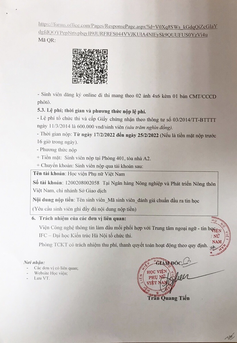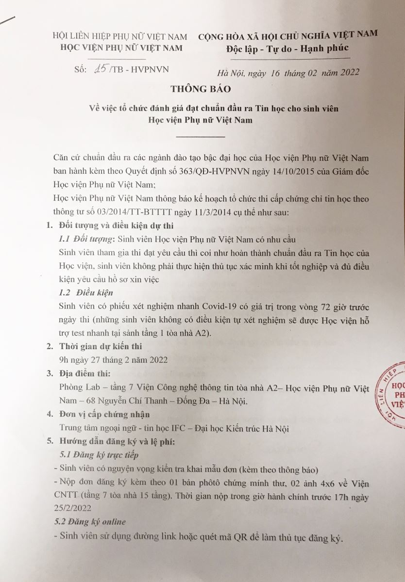 Thông báo đánh giá đạt chuẩn đầu ra Tin học cho sinh viên