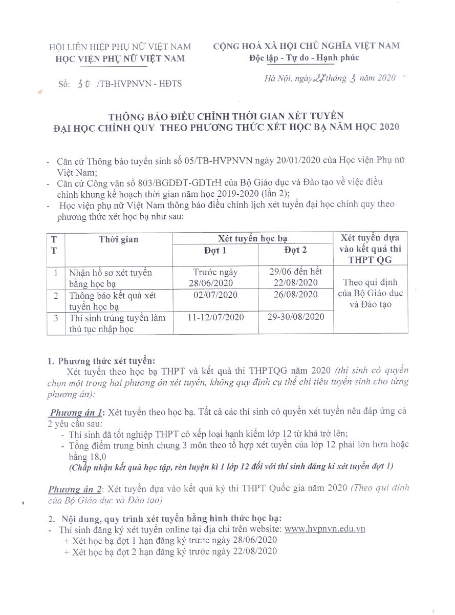 Thông báo điều chỉnh thời gian xét tuyển đại học năm 2020