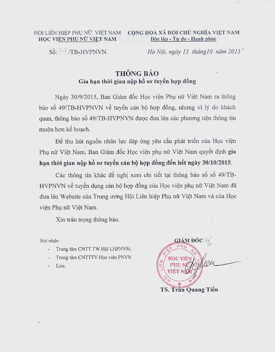 Tin tứcTHÔNG BÁO GIA HẠN TUYỂN DỤNG CÁN BỘ HỢP ĐỒNG Posted on Tháng Mười 19, 2015 by admin(full) 19 Th10 Nội dung chi tiết tuyển dụng TẠI ĐÂY admin(full) Diễn đàn Phụ nữ, Hòa bình và Phát triển Lễ kỉ niệm ngày Phụ nữ Việt Nam và Hội thi “Tìm hiểu về Hội LHPN Việt Nam”
