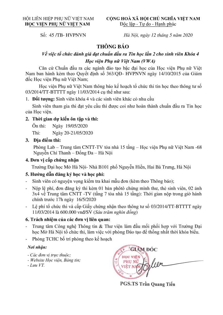 Tin tứcThông báo lịch đánh giá đạt chuẩn đầu ra Tin học lần 2 dành cho SV khóa 4 Posted on Tháng Năm 12, 2020 by admin(full) 12 Th5 Mẫu đơn đăng ký dự thi đánh giá đạt chuẩn đầu ra Tin học admin(full) Thông báo tuyển sinh đi học tại Liên bang Nga theo diện Hiệp định năm 2020 Bộ Giáo dục và Đào tạo: Hưởng ứng Tuần lễ Quốc gia Nước sạch và vệ sinh môi trường