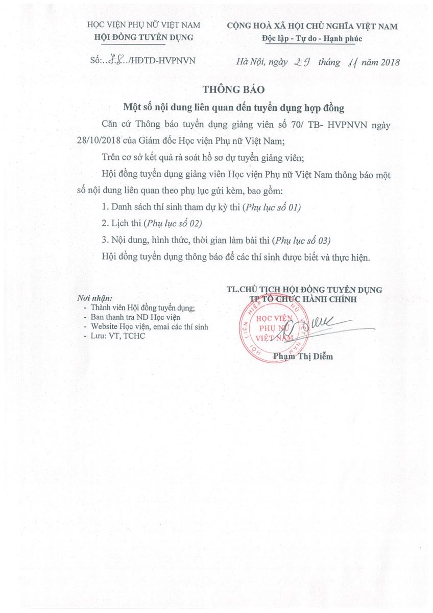 Thông báo nội dung liên quan đến thi tuyển hợp đồng 2018