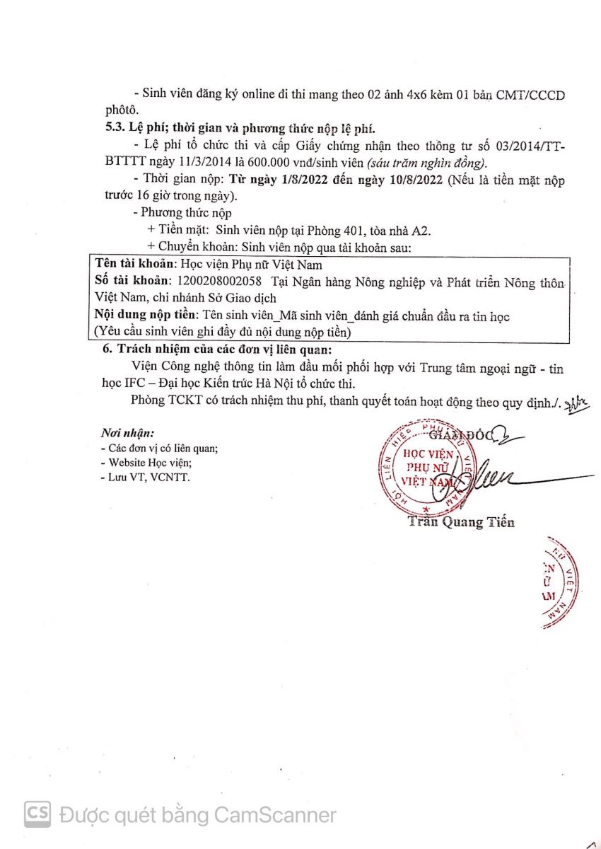 Sinh viên tham gia thi đạt yêu cầu thì coi như hoàn thành chuẩn đầu ra Tin học của Học viên, sinh viên không phải thực hiện thủ tục xác minh khi tốt nghiệp và đủ điều kiện yêu cầu hồ sơ xin việc.