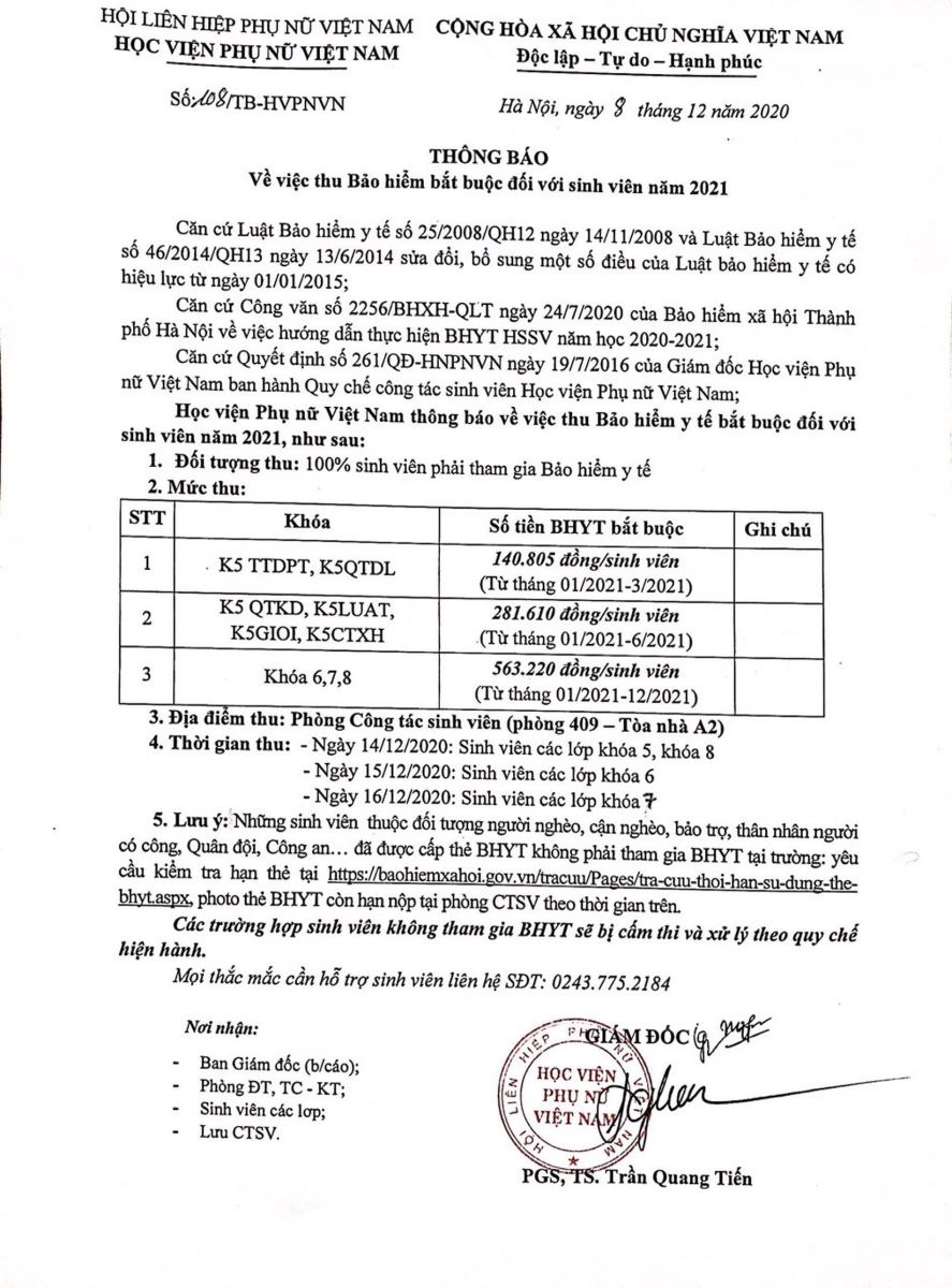Thông báo thu bảo hiểm Y tế năm 2021