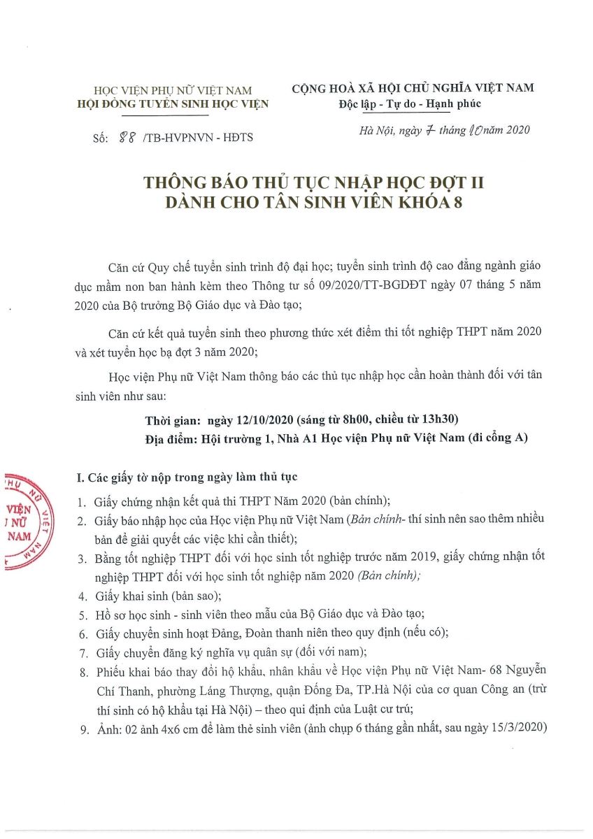 Tin tứcThông báo thủ tục nhập học đợt 2 dành cho tân SV K8 Posted on Tháng Mười 7, 2020 by admin(full) 07 Th10 admin(full) THÔNG BÁO ĐIỂM TRÚNG TUYỂN ĐẠI HỌC NĂM 2020 Phóng sự ảnh: Hội thảo KHQT Vai trò của giới trong gia đình hiện đại