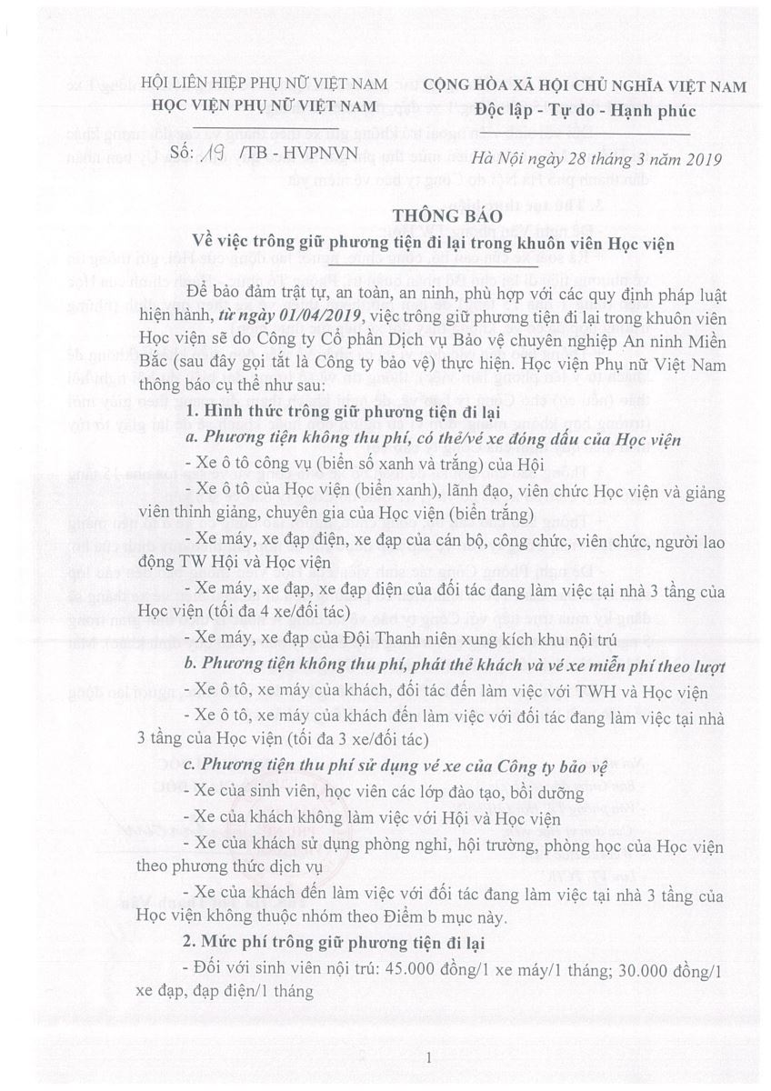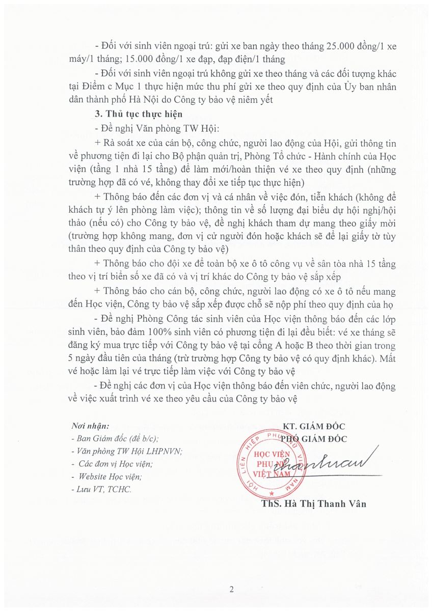 Thông báo về việc trông giữ phương tiện đi lại trong khuôn viên Học viện