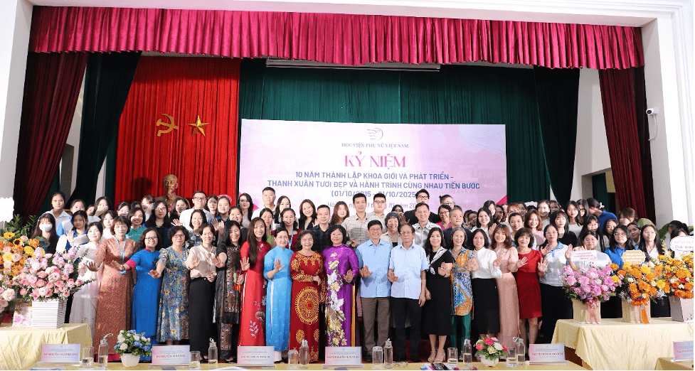 Ngày 1/10/2025, Khoa Giới và Phát triển đã long trọng tổ chức Lễ kỷ niệm 10 năm thành lập tại Hội trường lớn của Học viện Phụ nữ Việt Nam. Đây là dấu mốc quan trọng, ghi nhận chặng đường nỗ lực không ngừng của tập thể giảng viên, sinh viên trong sự phát triển chung của Học viện và khẳng định vị thế của Khoa là đơn vị tiên phong trong đào tạo, nghiên cứu và thúc đẩy bình đẳng giới và phát triển bền vững.