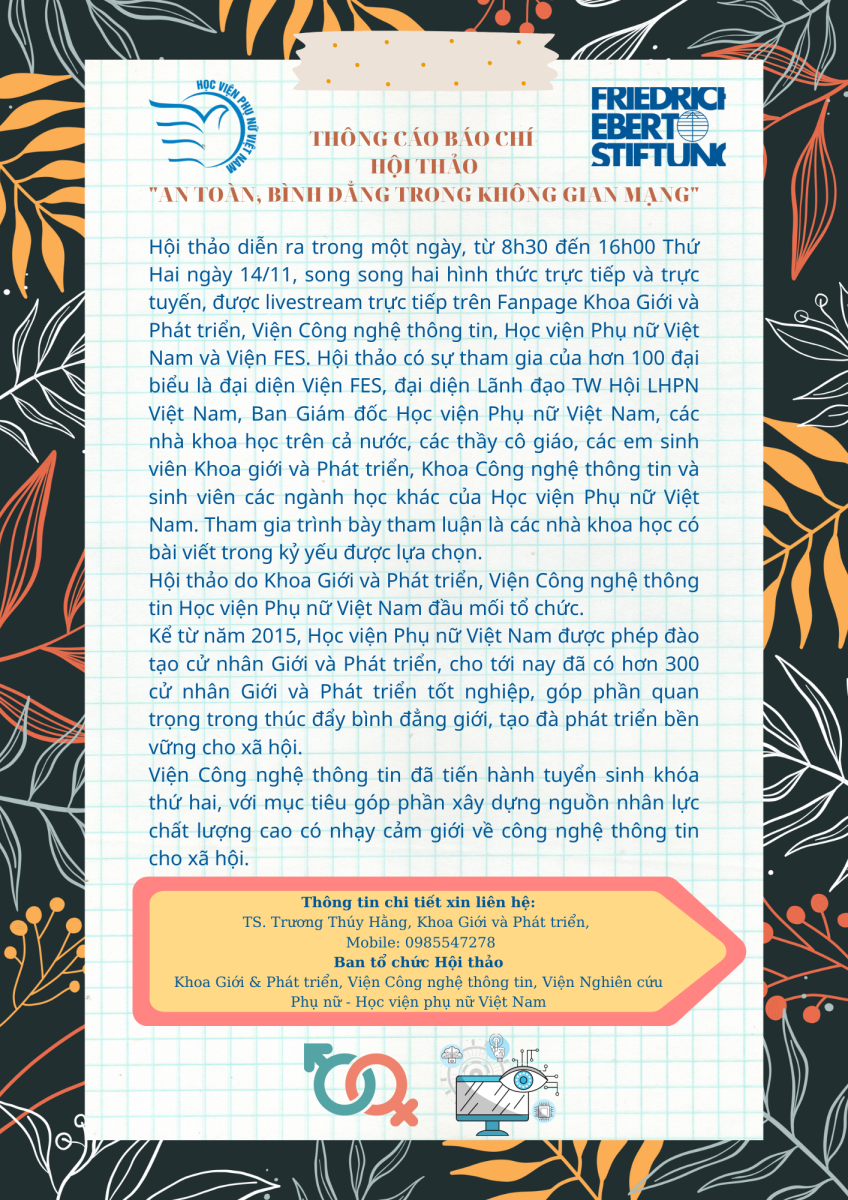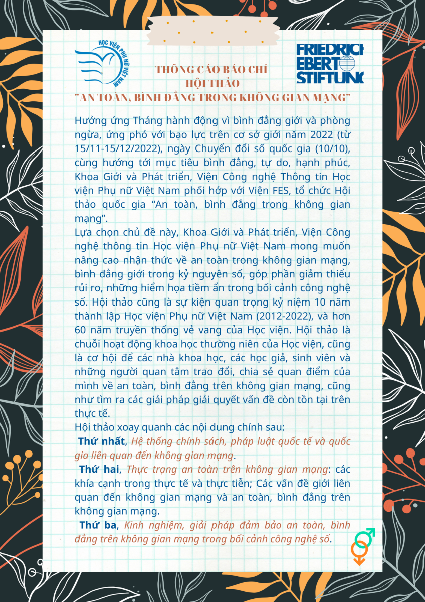 Thông cáo báo chí hội thảo khoa học Quốc gia: “An toàn và bình đẳng trong không gian mạng”