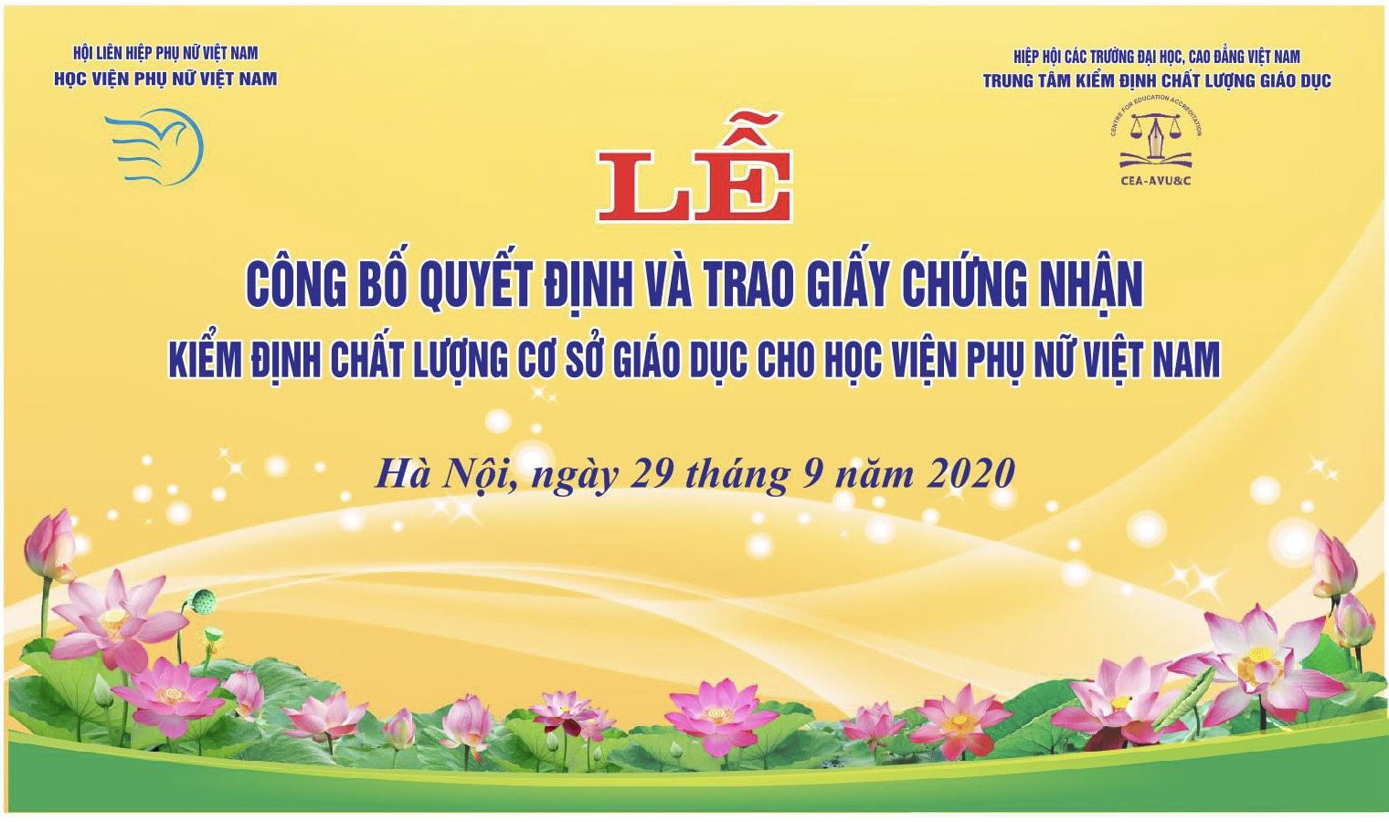 Tại buổi lễ, Học viện Phụ nữ Việt Nam sẽ chính thức được công nhận đạt chuẩn kiểm định chất lượng giáo dục theo bộ tiêu chuẩn mới, ban hành kèm theo Thông tư 12/2017/TT-BGDĐT của Bộ Giáo dục và Đào tạo. Cho tới nay, Học viện Phụ nữ Việt Nam là một trong gần 30 cơ sở giáo dục đại học đầu tiên trong tổng số 235 trường đại học của Việt Nam đạt tiêu chuẩn kiểm định chất lượng theo bộ tiêu chí đánh giá này. Bộ tiêu chuẩn đánh giá chất lượng cơ sở giáo dục của Việt Nam theo hướng tiếp cận với bộ tiêu chuẩn của AUN-QA và được xây dựng trên cơ sở đảm bảo sự tương thích với bộ tiêu chuẩn của Mỹ và Châu Âu. Bộ tiêu chuẩn kiểm định chất lượng giáo dục đại học gồm 25 tiêu chuẩn với 111 tiêu chí. Các tiêu chuẩn được chia thành 4 nhóm, bao gồm: đảm bảo chất lượng về chiến lược; đảm bảo chất lượng về hệ thống; đảm bảo chất lượng về chức năng hoạt động (đào tạo, nghiên cứu khoa học, kết nối – phục vụ cộng đồng) và kết quả hoạt động của nhà trường.