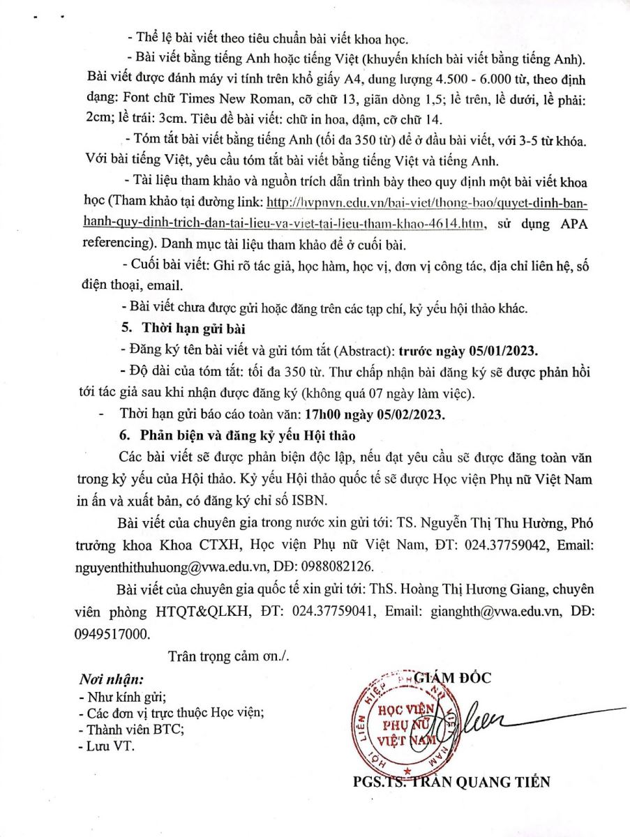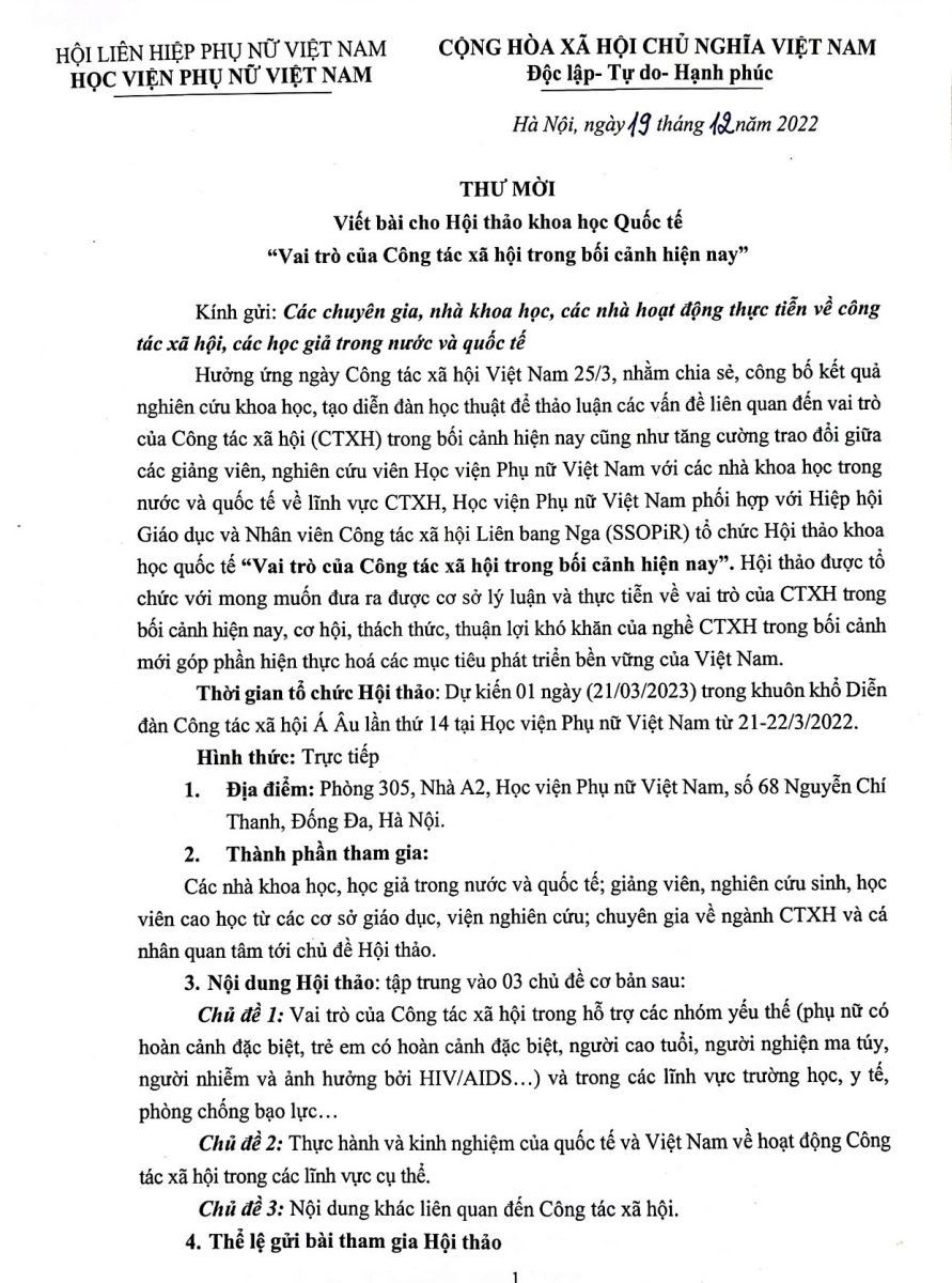Thư mời viết bài hội thảo khoa học quốc tế