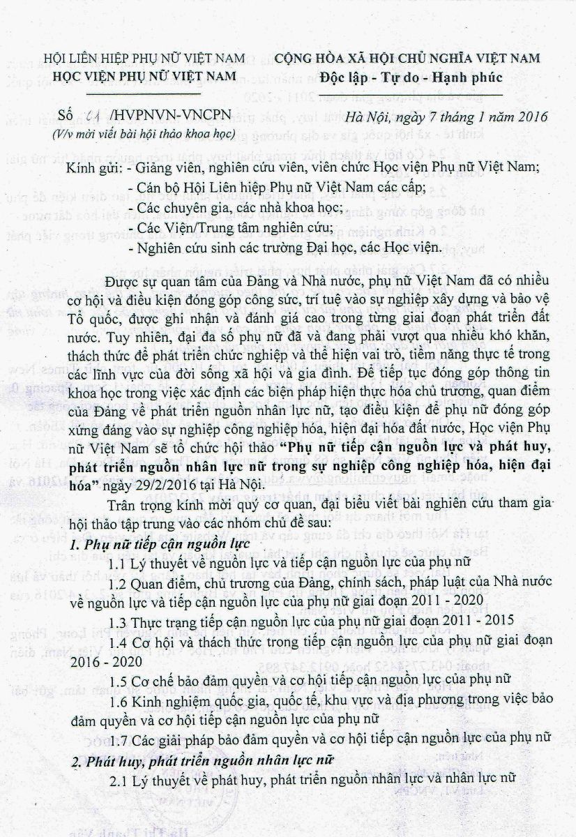 Tin tứcTHƯ MỜI VIẾT BÀI HỘI THẢO KHOA HỌC Posted on Tháng Một 8, 2016 by admin(full) 08 Th1 admin(full) Học viện Phụ nữ Việt Nam làm việc với tình nguyện viên Mỹ Vài nét về lịch sử học chế tín chỉ