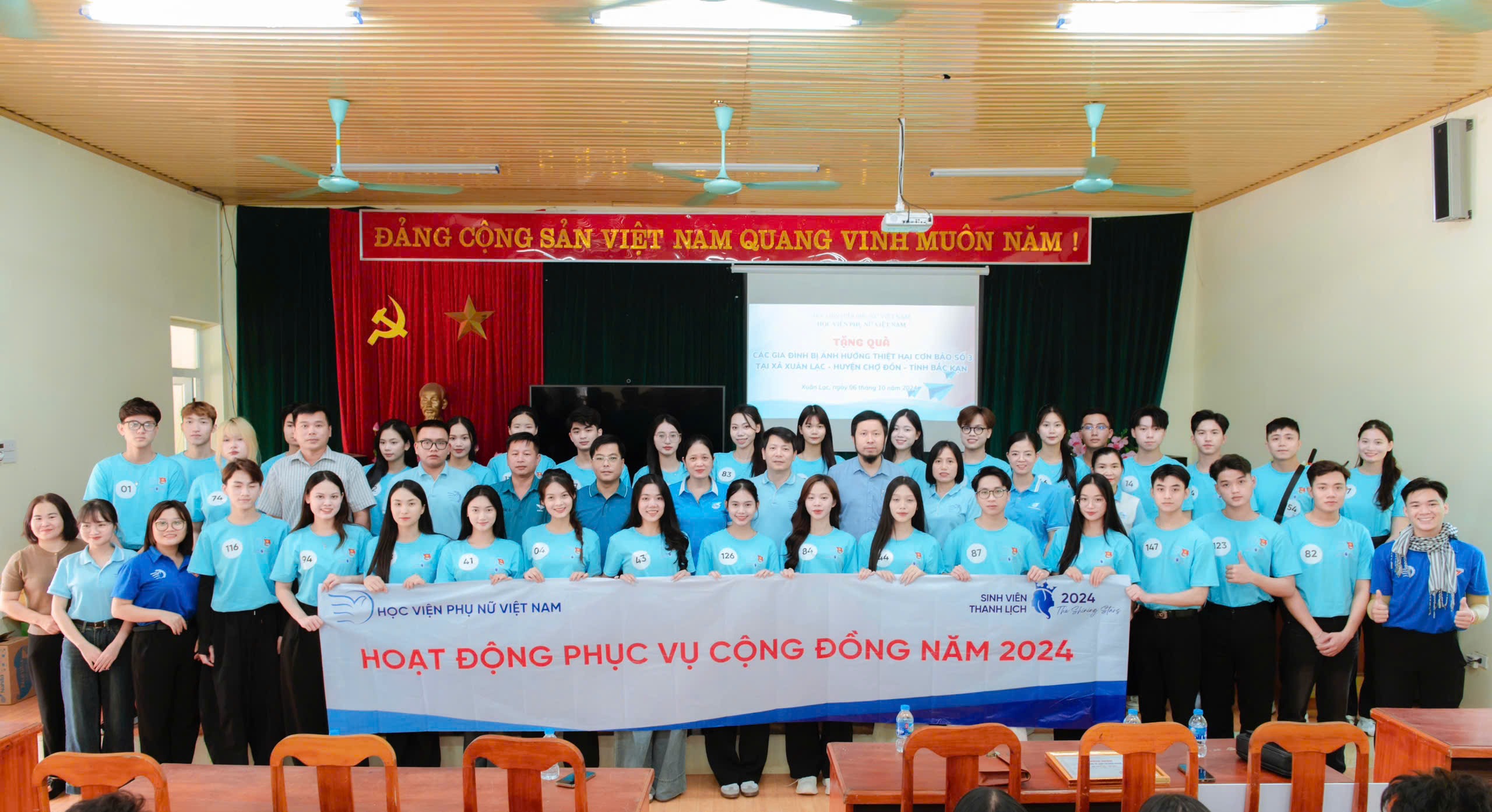 Tại xã Xuân Lạc, huyện Chợ Đồn, tỉnh Bắc Kạn, đoàn công tác đã trao tặng các phần quà cho 10 gia đình bị ảnh hưởng bởi cơn bão, góp phần giúp đỡ người dân sớm ổn định cuộc sống. Đặc biệt, đoàn đã tặng các nhu yếu phẩm và công trình “Thắp sáng đường quê”, một sáng kiến có ý nghĩa quan trọng trong việc cải thiện điều kiện sống của bà con tại địa phương. Đây là hoạt động thể hiện sự quan tâm sâu sắc của Học viện Phụ nữ Việt Nam và các đối tác, trong đó có Công ty TNHH Tổ chức Sự kiện Hoàng Gia, đối với cộng đồng dân cư vùng kinh tế khó khăn, đặc biệt là những người chịu ảnh hưởng của thiên tai.