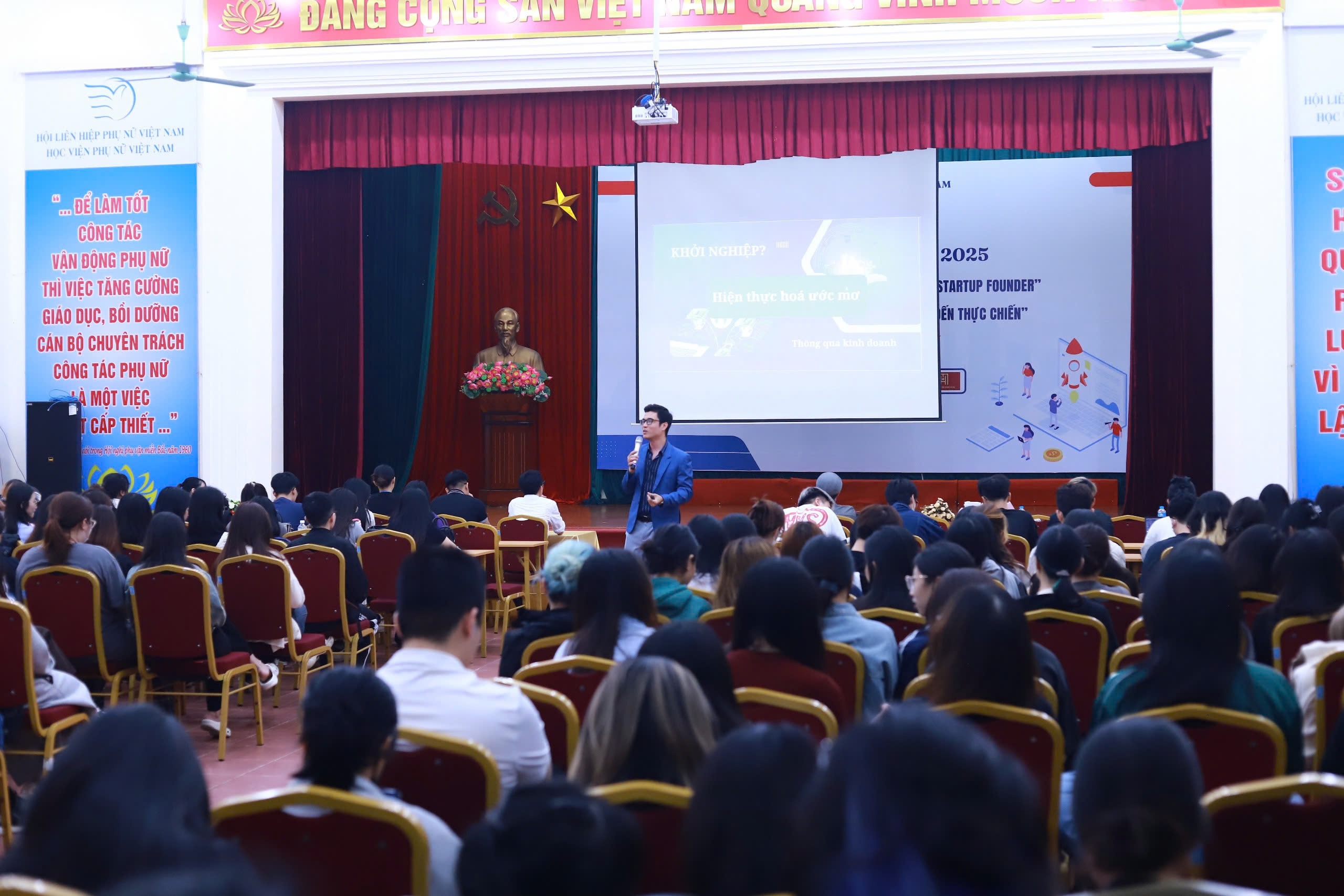 Tọa đàm buổi sáng với chủ đề “Câu chuyện khởi nghiệp – Từ sinh viên đến Startup Founder” đã mang đến một không gian cởi mở, gần gũi nhưng không kém phần chuyên sâu. Dưới sự trao đổi của Tiến sĩ Nguyễn Hùng Cường, Trưởng khoa Quản trị kinh doanh – Học viện Phụ nữ Việt Nam, cùng với sự chia sẻ của chuyên gia Lê Trung Thắng – Founder & CEO Vietnam DX Group, tọa đàm đã giúp sinh viên hiểu rõ hơn về con đường hiện thực hóa giấc mơ khởi nghiệp. Đó thực sự là hành trình của đam mê và bản lĩnh.