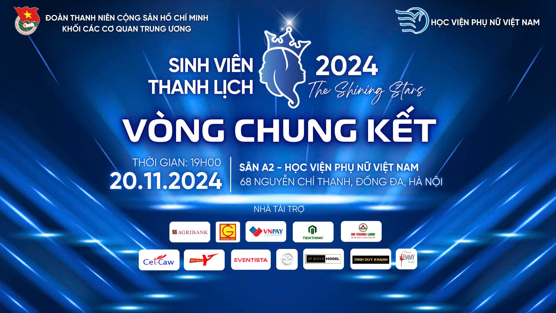 Đêm chung kết tại Học viện Phụ nữ Việt Nam hứa hẹn sẽ mang đến một hành trình cảm xúc đầy màu sắc qua năm phần thi chính: